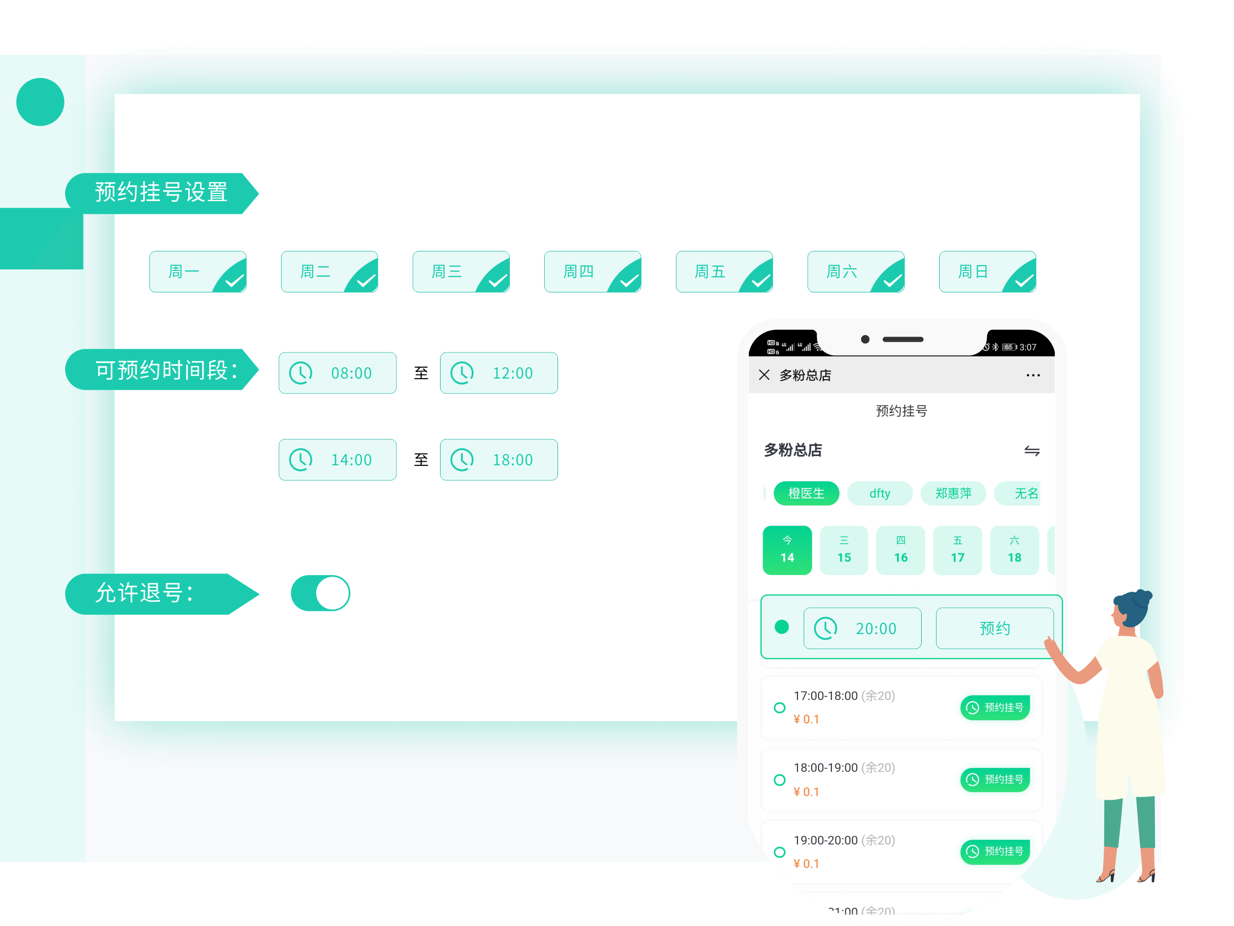 支持将医生的号源分时段展示,患者可分时段预约医生;