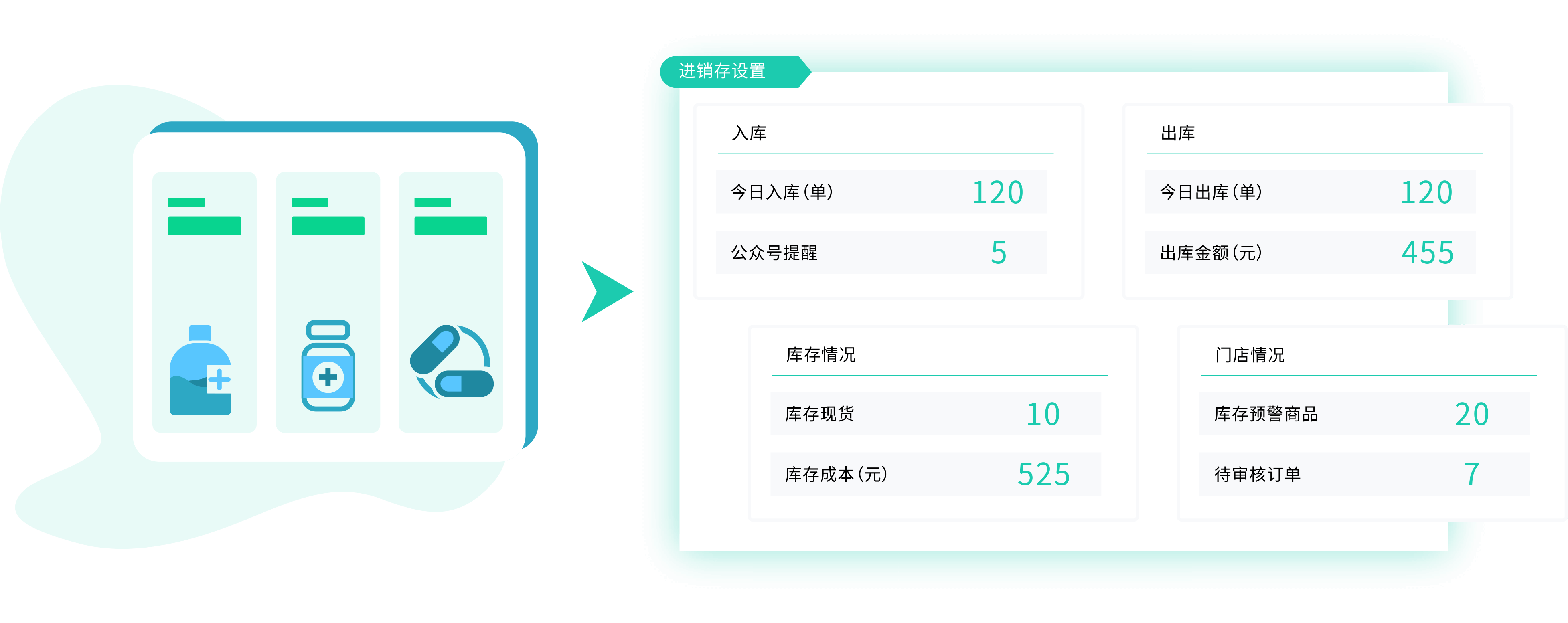 医疗用品、药品设有配套的进销存系统,方便出入库以及对外销售