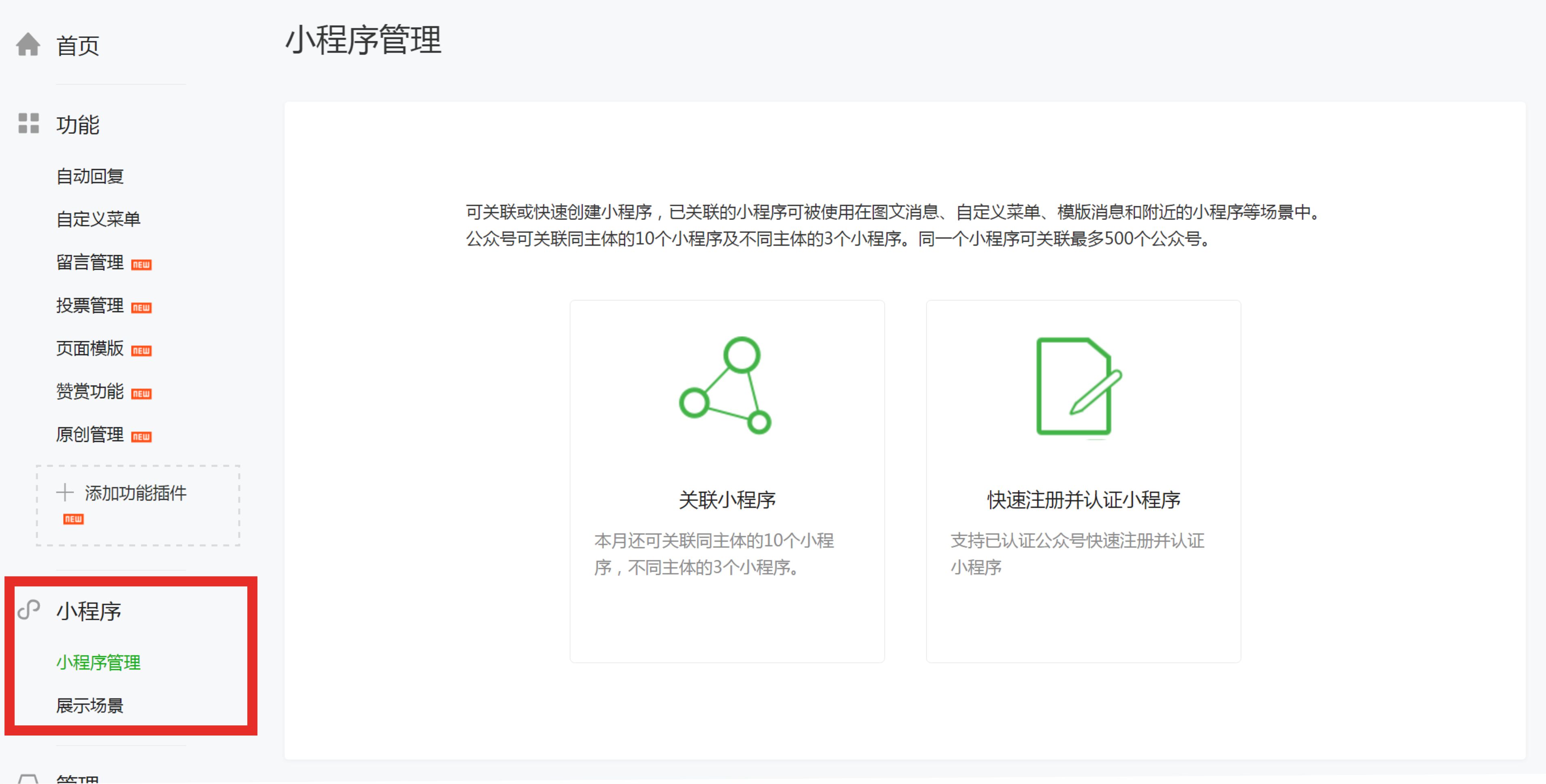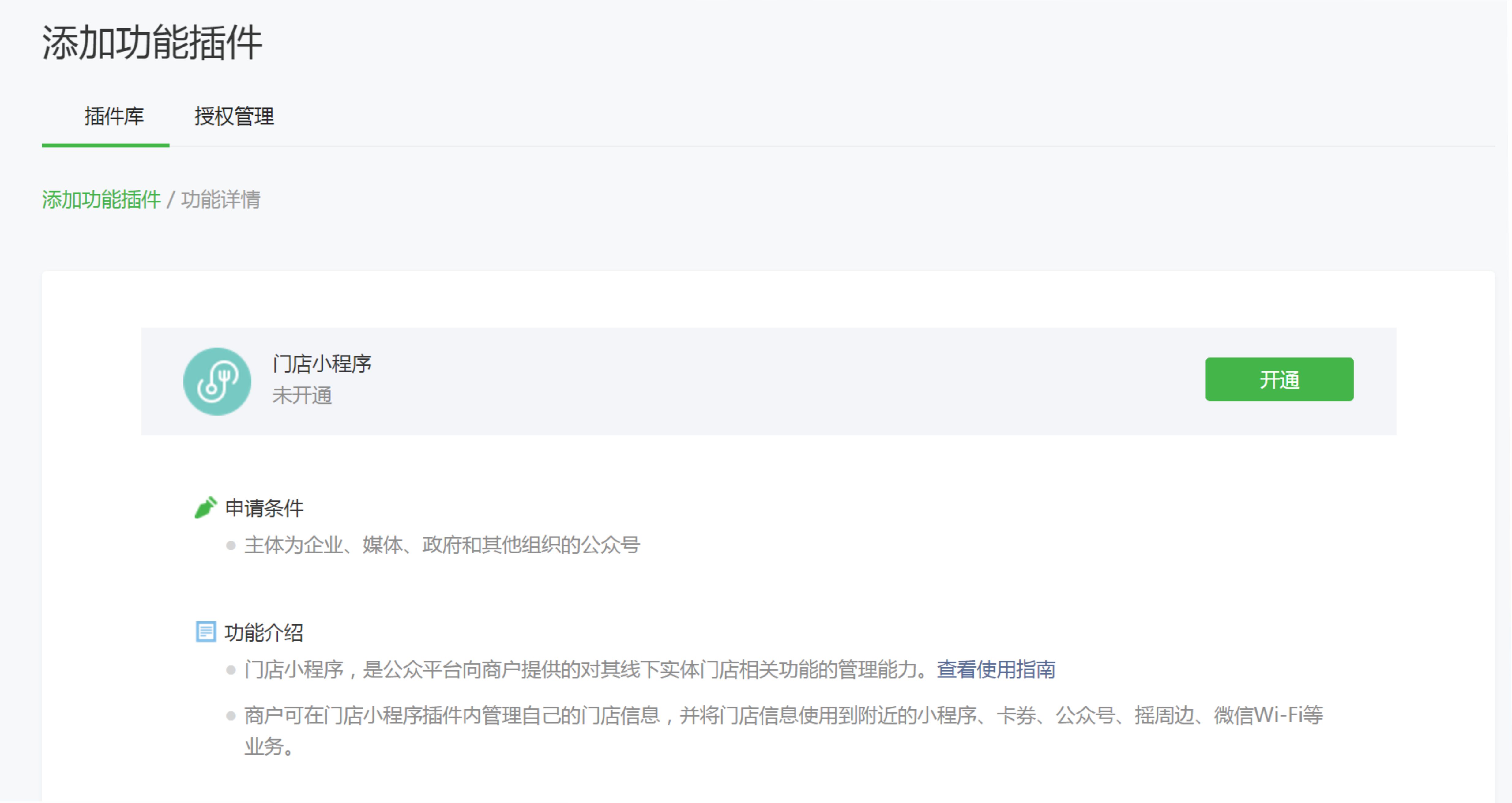 在登录公众号平台后,可将“门店管理”功能升级成“门店小程序”。